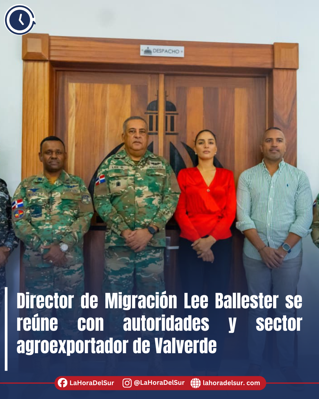 PROVINCIA VALVERDE.- El director general de Migración, Vicealmirante Luis Rafael Lee Ballester, ARD., sostuvo una reunión de trabajo con autoridades locales, empresarios, productores y representantes del sector bananero de la provincia Valverde. El objetivo fue socializar las medidas de control migratorio que se están implementando a nivel nacional y escuchar los planteamientos del sector productivo.