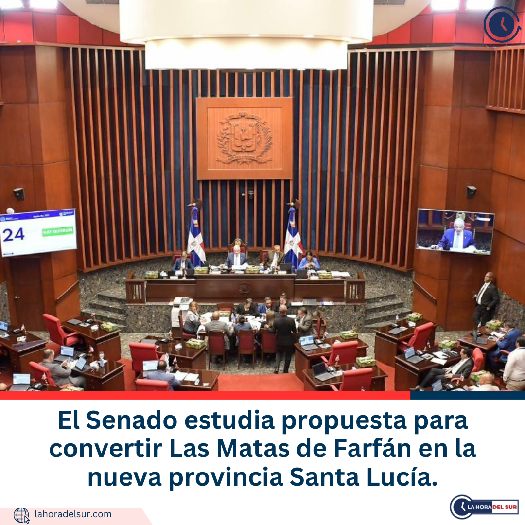 El Senado de la República Dominicana analiza una propuesta legislativa presentada por el senador Félix Bautista, que busca elevar el municipio de Las Matas de Farfán, actualmente parte de la provincia San Juan, a la categoría de provincia bajo el nombre de Santa Lucía.