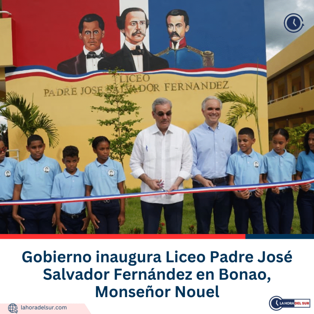 El presidente de la República, Luis Abinader, junto al ministro de Educación, Luis Miguel De Camps, encabezó este sábado la inauguración del Liceo Padre José Salvador Fernández, en el distrito municipal Sabana del Puerto, provincia Monseñor Nouel, una moderna infraestructura educativa que beneficiará a más de 800 estudiantes del nivel secundario en la zona.