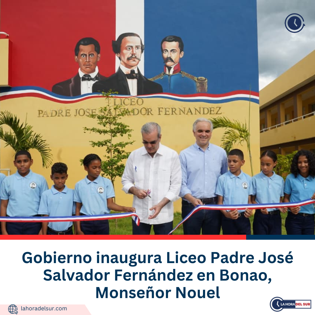 El presidente de la República, Luis Abinader, junto al ministro de Educación, Luis Miguel De Camps, encabezó este sábado la inauguración del Liceo Padre José Salvador Fernández, en el distrito municipal Sabana del Puerto, provincia Monseñor Nouel, una moderna infraestructura educativa que beneficiará a más de 800 estudiantes del nivel secundario en la zona.