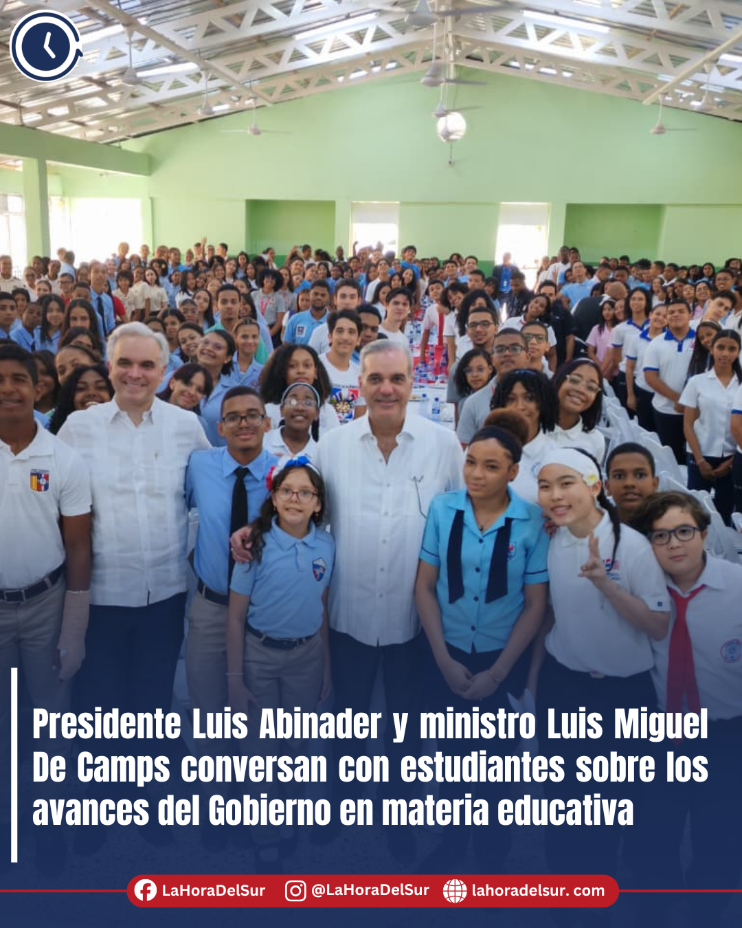 El presidente Luis Abinader y el ministro de Educación, Luis Miguel De Camps, conversaron con estudiantes de centros educativos públicos y privados, con el propósito de escuchar sus planteamientos sobre distintos temas y peticiones relacionadas con las necesidades de sus centros educativos.
