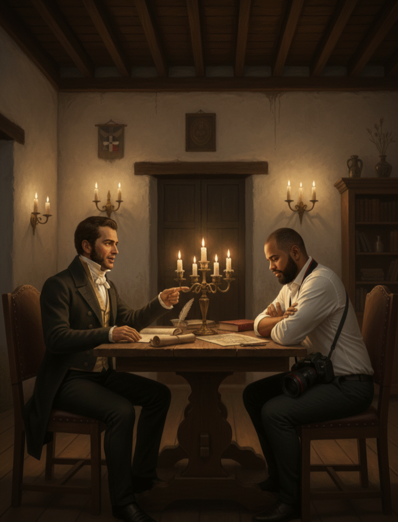 Acompañamos a Duarte en 1838, en una habitación discreta donde funda La Trinitaria junto a otros jóvenes valientes. Allí, bajo la luz tenue de una vela, escuchamos el juramento solemne: sacrificarlo todo por la libertad. En ese instante comprendemos que no estamos ante un político, sino ante un visionario que concibe la República como un espacio de dignidad y justicia.